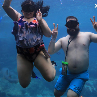 We booked our snorkeling experience as we docked the ferry in Isla Mujeres. There were plenty of excursions and activities for sale. The specific one we booked was only $40 per person and included four points of the island: snorkeling, a fresh swim in shallow waters, dolphin watch, and a buffet stop at a beach club party.